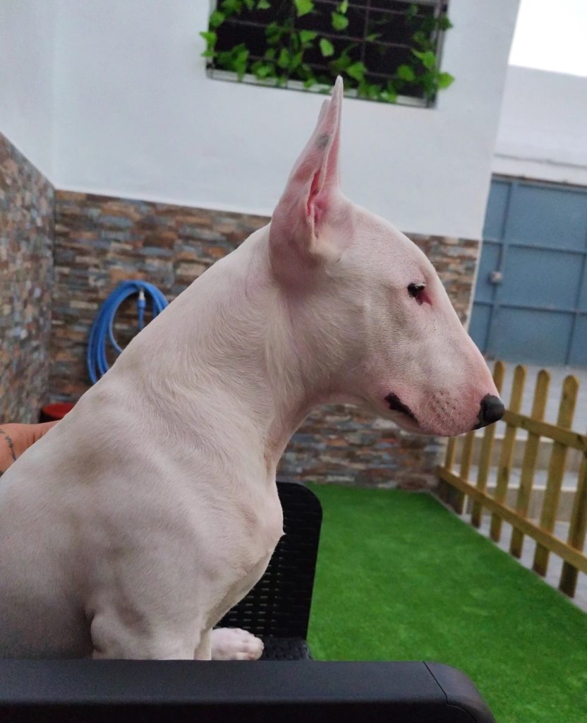 Bull tiene muchísimos miedos cuando vino a casa, como miedo al exterior… Ruidos… Personas…y un sinfín mas. Y lo peor,